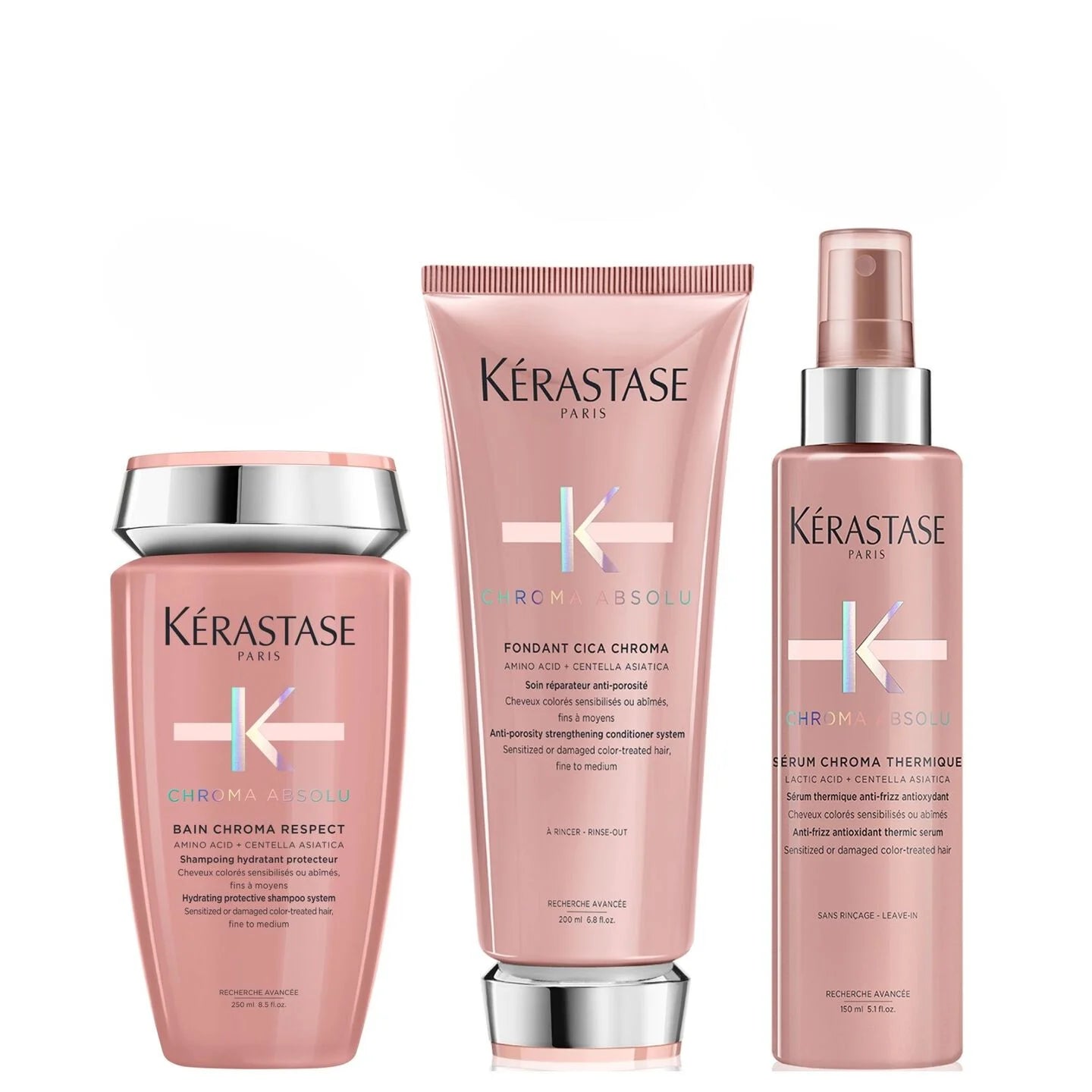 Illuminez vos cheveux colorés avec le coffret de fêtes Chroma Absolu. Ce rituel comprend le Bain Chroma Respect, le Fondant Cica Chroma et le Sérum Chroma Thermique, pour une couleur éclatante, une fibre capillaire renforcée et une brillance sublimée. (valeur de 192 $).